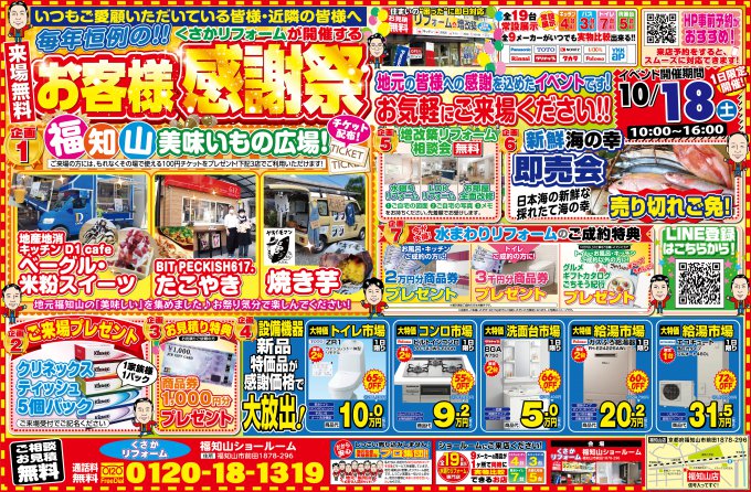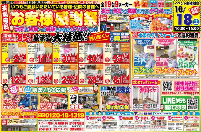 また、日本海の新鮮な海の幸即売会も開催しています! リフォーム増改築をお考えの方は勿論、これからリフォームをお考えの方も
